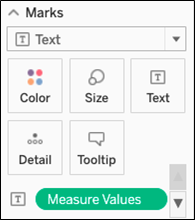 Now the worksheet shows these Measure Values. If we had not dropped Measure Values on the Text Mark it would show abc in every field. Not sure why that is; it just behaves that way.